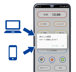 わからないことがあっても、ご自身に変わって家族の端末から遠隔で、設定や操作のサポートを受けることができます。