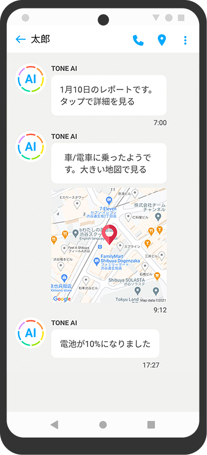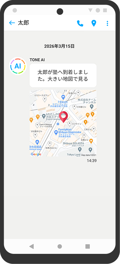 AIがお子様の居場所や状態を通知。