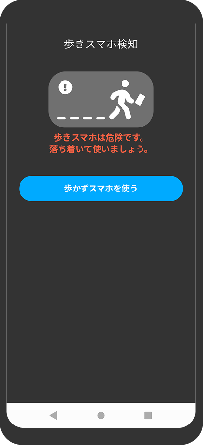 移動中の「ながらスマホ」にも安心。「歩きスマホ」をしている間はスマホが操作できなくなるので、歩きスマホの危険性からお子様を守ります。