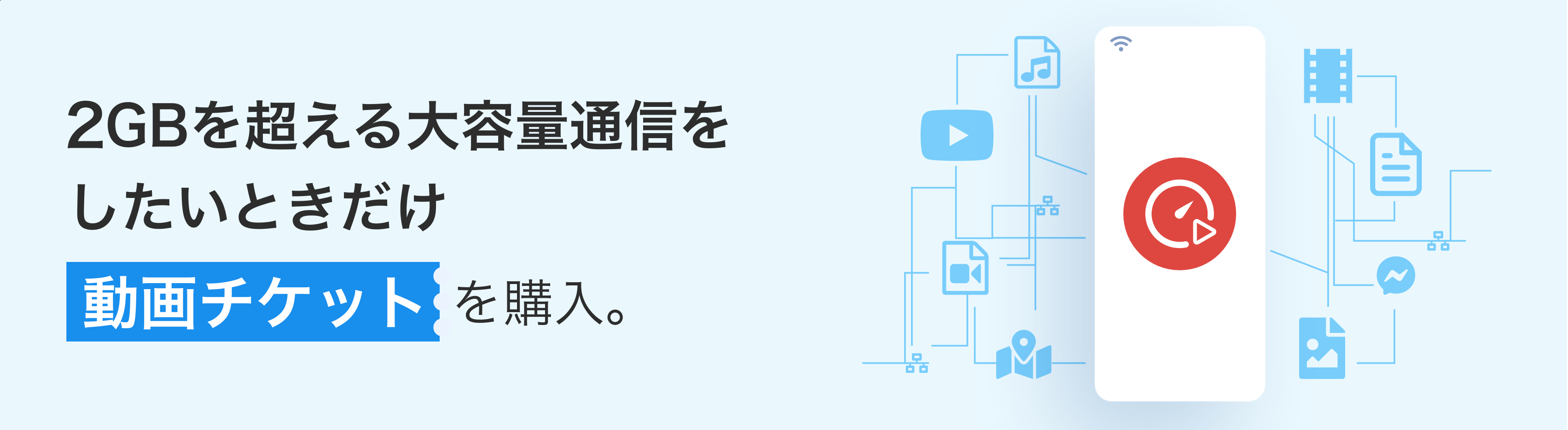 - ※ Wi-Fi環境以外で動画視聴やファイル交換(P2P。容量に関わらない)を行う際には動画チケットが必要です。